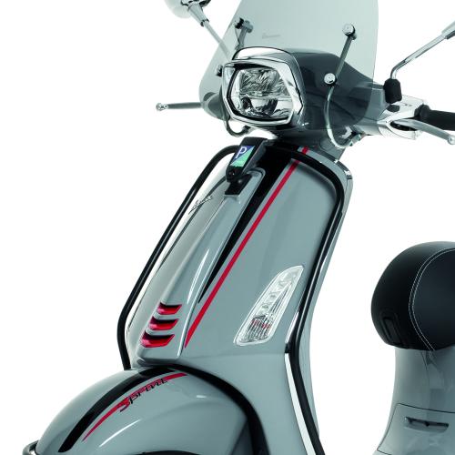 | Thanh bảo vệ trước màu đen mờ kết hợp giữa vẻ ngoài thể thao với sự bảo vệ tuyệt đối. Thanh bảo vệ phía trước góp phần tạo nên nét độc đáo cho Vespa đồng thời bảo vệ thân xe khỏi va đập. |